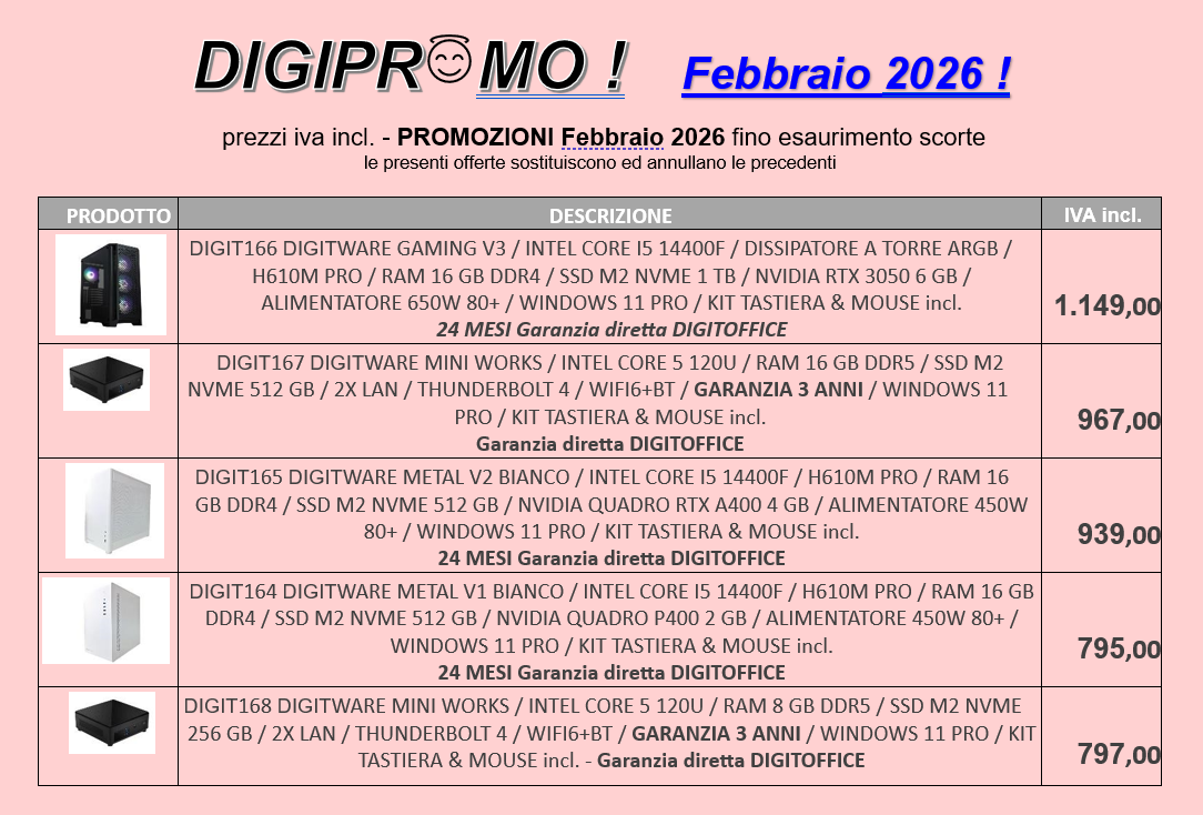 iva incl. / agg. 20 Febbraio 2026 - valide fino al 28 febbraio
